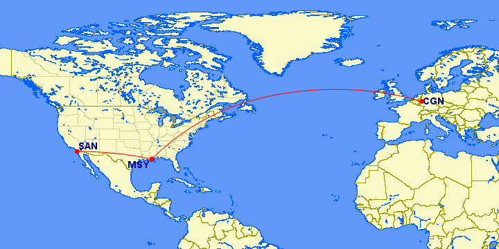 weiter geht es in der diesjährigen Gruppenflugsaison anlässlich des 10-jährigen Eulenjubiläums mit einem Gruppenflug, der uns wieder mal zu einigen der schönsten Szenerien führt, die es zur Zeit für den Flusi gibt. Zwei Legs haben wir für euch parat: Das erste Leg wird ein Longhaul-Flug über den Nordatlantik im ganz klassischen Sinne sein, und zwar von Köln nach New Orleans. Der Weiterflug führt uns dann über das wohl berühmteste Parkhaus unter Flugzeugbegeisterten nach San Diego.